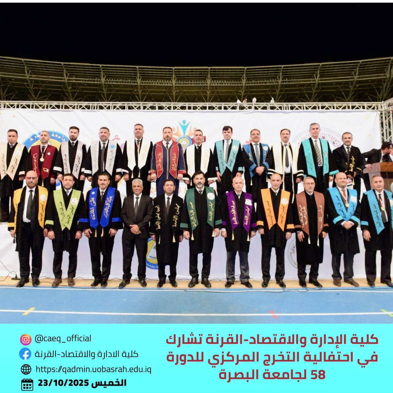 كلية الإدارة والاقتصاد-القرنة تشارك في احتفالية التخرج المركزي للدورة 58 لجامعة البصرة