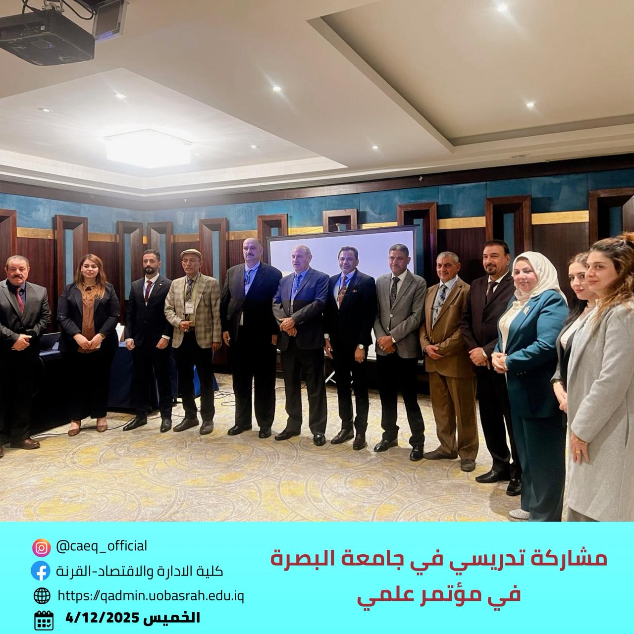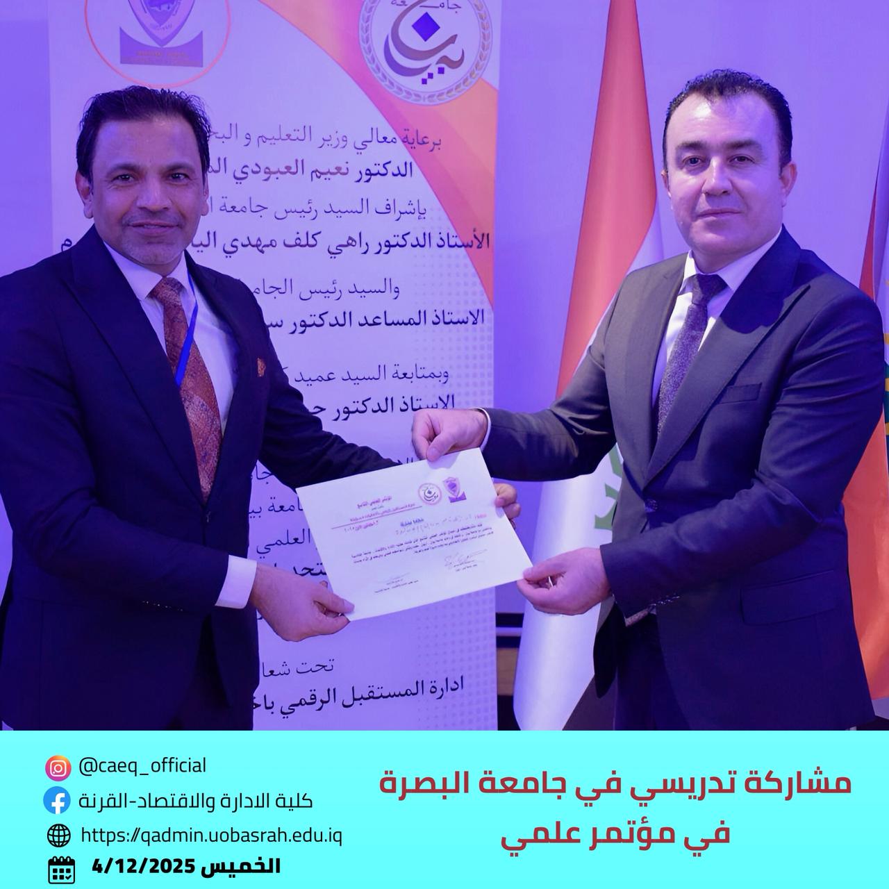 شارك الأستاذ الدكتور زاهد قاسم بدن، التدريسي في كلية الإدارة والاقتصاد/القرنة – جامعة البصرة، في المؤتمر العلمي التاسع الموسوم